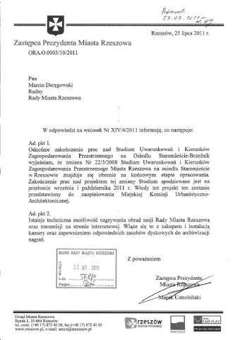 W trakcie majowej sesji zwróciłem się z prośbą o remont chodnika od strony ul. Słowackiego w kierunku wejścia na ul. Dekerta oraz wykonanie chodnika obok budynku przy ul. Langiewicza 1, w związku z usunięciem dotychczasowego przejścia. W odpowiedzi otrzymałem informację, że chodnik przy ul. Słowackiego jest w utrzymaniu Zarządu Zieleni Miejskiej i uznano, iż jest w „dobrym stanie technicznym”. Miejsce, które wymaga remontu jest w utrzymaniu właściciela prywatnej posesji. W związku z tym Straż Miejska w Rzeszowie podejmie działania mające na celu „wyegzekwowanie od właściciela naprawę chodnika”. Z kolei, teren, na którym znajdował się chodnik przy ul. Langiewicza stanowi własność Wspólnoty Mieszkaniowej, która podjęła decyzję o jego likwidacji.